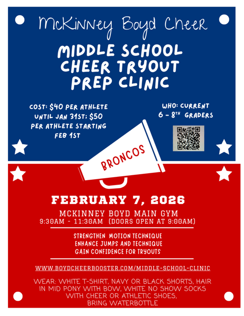 Where: McKinney Boyd High School Gymnasium- 600 Lake Forest Dr. McKinney, TX
